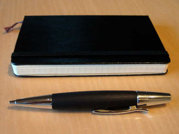 ぼくのような仕事をしていると、仕事で使う道具という意味ではコンピュータと筆記用具が中心となります。そしてその筆記用具のなかでも、ぼくがスケッチやドローイングをおこなうときには愛用しているのは芯ホルダーというもの。これは直径2ミリの鉛筆の芯をシャープペンシルのように軸にセットして使うもので、要はあまり削らなくていい鉛筆のようなもの。 いままではSTAEDTLERのMARS-780を使用していましたが、今回新たにFABER-CASTELLのエモーションを誕生日プレゼントとしていただきました。以前から欲しいと公言していた甲斐があったというものです。 このエモーションはグリップが太く適度な重量があるため、とても快適にスケッチがこなせます。またボディは梨の木でできておりクロームの光沢とあわせて高級感があります。FABER-CASTELLの芯ホルダーは芯の径が1.4ミリと特殊なものですが、これがあまりに太くなりがちな芯ホルダーの線を少しスリムにしてくれるので細かい描写にはより適していると思います。 あえて注文をつけるならば、いつもぼくは6Bの硬度の芯を使用しているのですが、この専用の替え芯はBしか選べないというところ。濃い線に慣れた僕にはちょっと薄く感じます。 ついでに福岡のLOFTでMOLESKINEのダイアリーのハードカバーを発見。以前からソフトカバーのものはあったのですが、ぼくはあの感触があまり好きになれませんでした。しかも憎いことに今年の7月から2009年12月までの18ヶ月バージョン。さっそくいままでの手帳に代えて使うことにしました。 追伸 「モレスキン」を変換すると「漏れスキン」と出ました。 気をつけましょう。