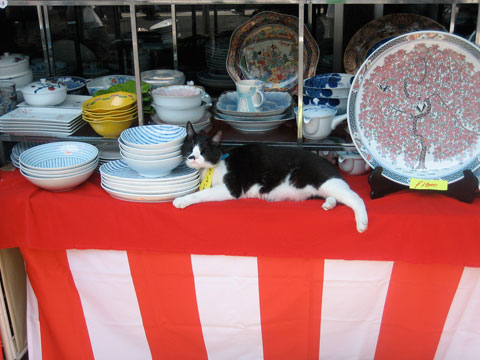 渋滞を避けるため早朝に小倉を出発。10時ごろには現地に到着し、まずは波佐見方面へ向かいます。去年も行ったテントの特売会場が目当てです。ここでは白山陶器の、ほとんど分からないくらいの不良箇所があるB級品が半額で購入できるのです。毎年いくつか購入しては1年のあいだにいくつか割るので、またこの機会に補充です。 この時点でこの旅の目的はほとんど果たしたともいえるのですが、今年は有田の方まで足をのばしてみることにしました。実は有田に行くのは初めてだったのですが、到着して想像以上の車と人間にびっくり。こういうのかなり苦手です。 人そして日差し 古い建物がいっぱい 気を取り直してメインストリートをひたすら進みますが、歩けども歩けどもぜんぜんはじっこまでたどり着けません。不審に思い地図を広げるとまだ半分も過ぎていないことが分かり愕然となります。 それでも歩き続けると気になる器などもちらほら見つかり、けっこう楽しむことができました。意外だったのは、若いデザイナーによるモダンな器などが思ったよりもあったこと。また職業柄建築に目がいってしまうのですが、そういう部分でも非常に興味深い町並みでした。 D&DEPARTMENT発見! ここも内装からクールでした なんとかメインストリートを往復して疲労困憊のまま帰途へつきましたが、ずいぶん楽しめたような気がします。今度はぜんぜん何もなさそうな平日にまた来てみたいと思いました。 看板猫。首輪に注目。