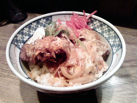 黒兵衛』に行きました。ここは隣の鶏屋さんがやっているカウンターのみの小さな店ですが、看板メニューの「とりかつ丼」は揚げたてサクサクのカツとトロトロの卵という最高の組み合わせ。当然うまくないはずがない!僕にしては珍しく携帯のカメラで写真まで撮りました。