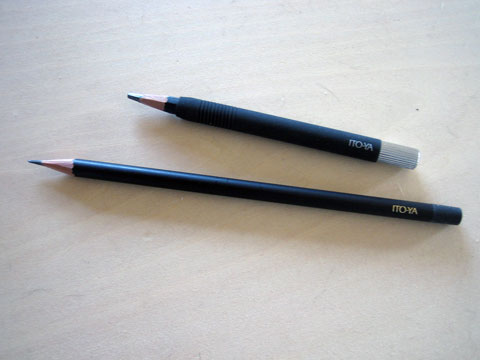 今回は、使い終わらない鉛筆やペンが折り重なっている僕の引き出しの中から、いくつか愛用の品を紹介していきます。 これは先日の東京遠征のとき伊東屋で購入したオリジナルの鉛筆と鉛筆ホルダーです。どちらもつや消しの黒で、鉛筆の尻には消しゴムが、金具などを使わずに(ケンチク的にいえばツラで)ついています。こういったディテール・納まりにこそ、そのプロダクトのクオリティが現れています。 これは日常使いの万年筆。もともとはPelikano junior(緑)を使っていたのですが、最近は少しだけ高級にLAMY safari(黄)を愛用しています。どちらとも多少ラフに扱って怖くない価格なので助かっています。