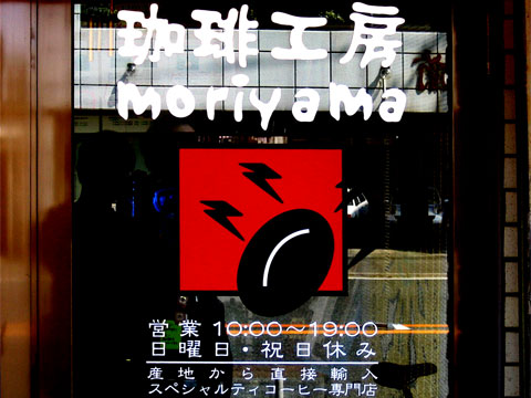 僕がいつもコーヒー豆を購入しているのは緑ヶ丘の珈琲工房森山さんというお店です。MAMEdesignでこの店舗のガラス面のカッティングシートのデザインをさせていただいたのですが、先日その貼替えの現場に立ち会ってきました。今回はお店のロゴやマークに変更がなかったため、あまり頭をひねることもなかったのですが…。
